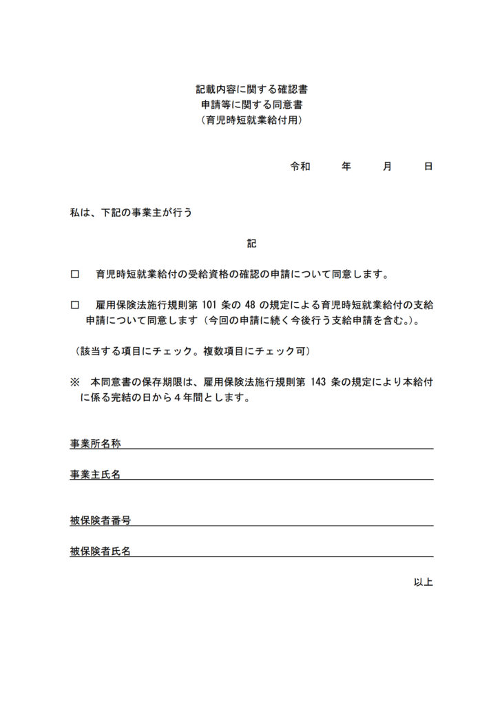 事業者が申請を行う際、労働者本人から「記載内容に関する確認書・申請等に関する同意書」を受け取り、申請書に添付することで、申請時の本人署名を省略できます。