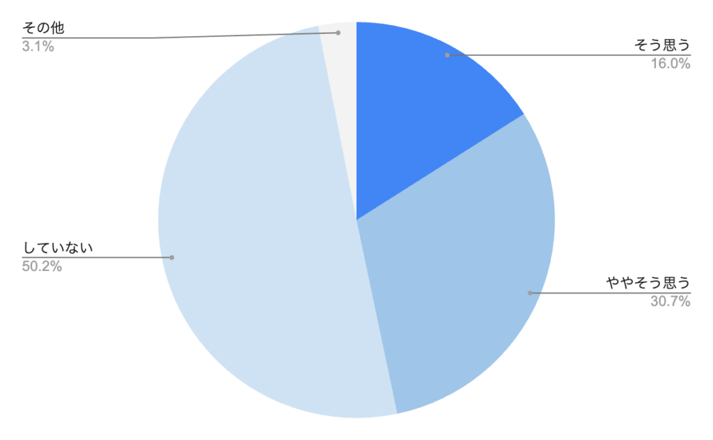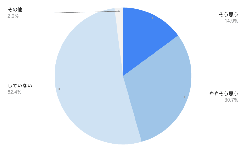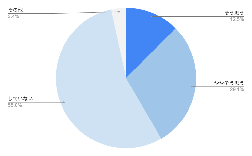 株式会社マイナビが2025年4月に公表した調査データ(3,000件、20~59歳の正社員の男女)によると、「静かな退職をしているか?」という質問に対して「そう思う」「ややそう思う」と回答した労働者の割合は44.5%でした。