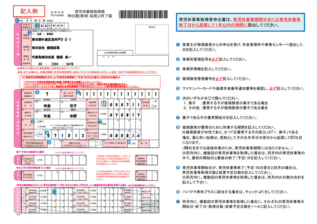 - 「健康保険・厚生年金保険 育児休業取得者申出書」の作成