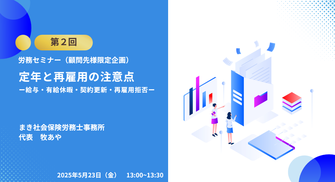 【主催セミナー】第2回テーマ:定年と再雇用の注意点(2025.5.23開催)