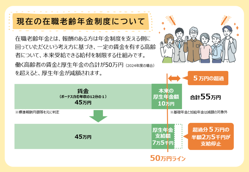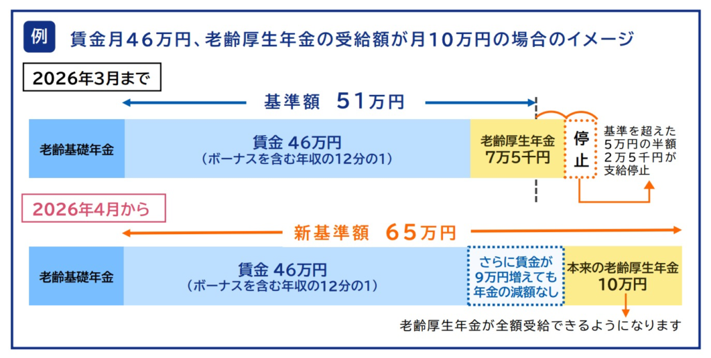 2026年4月から「一定額以上」の基準額が65万円に引き上げられ、「年金をもらいながら働き続けたい」方をより後押しする制度となります。